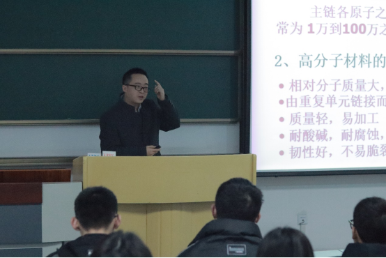 副院长王燚老师、材料系系主任兼材料化学教研室主任袁华老师以及高分子材料与工程教研室主任卢苇老师为本专业全体同学上好新生入学教育专业导论第一课。