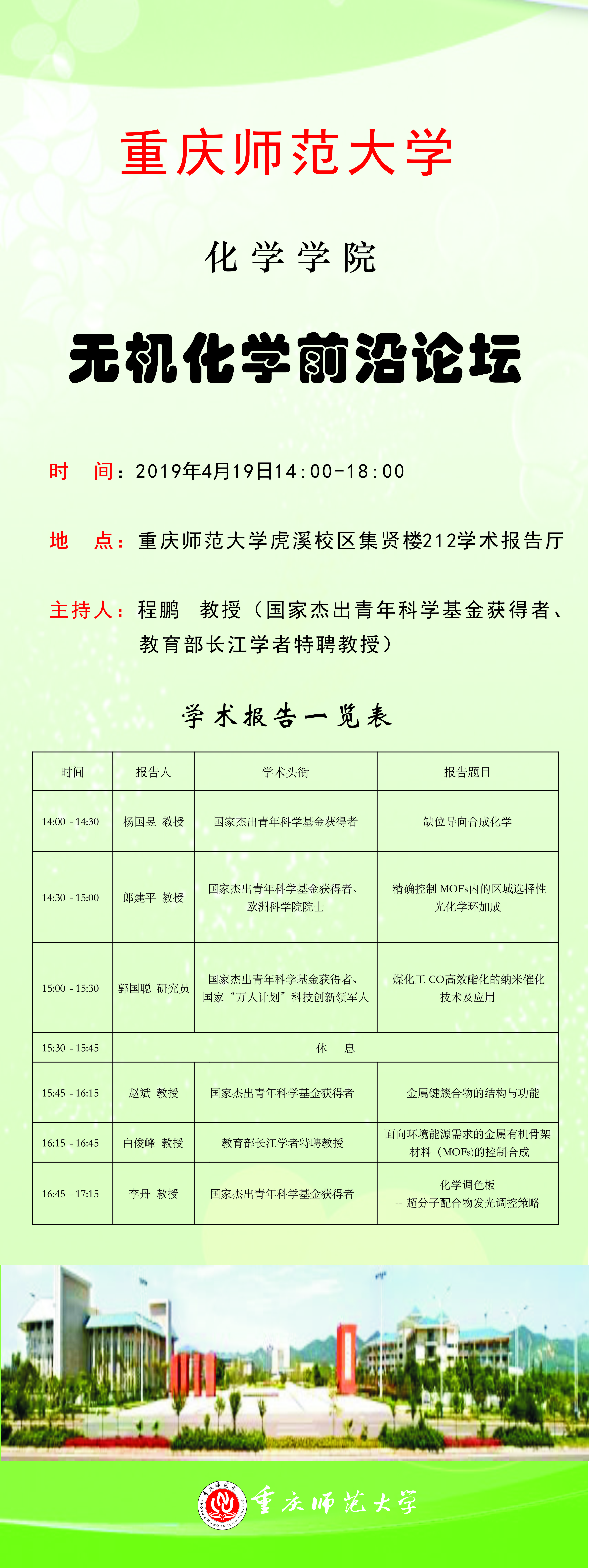 2019年4月19日下午2时,无机化学前沿论坛应邀在91九色