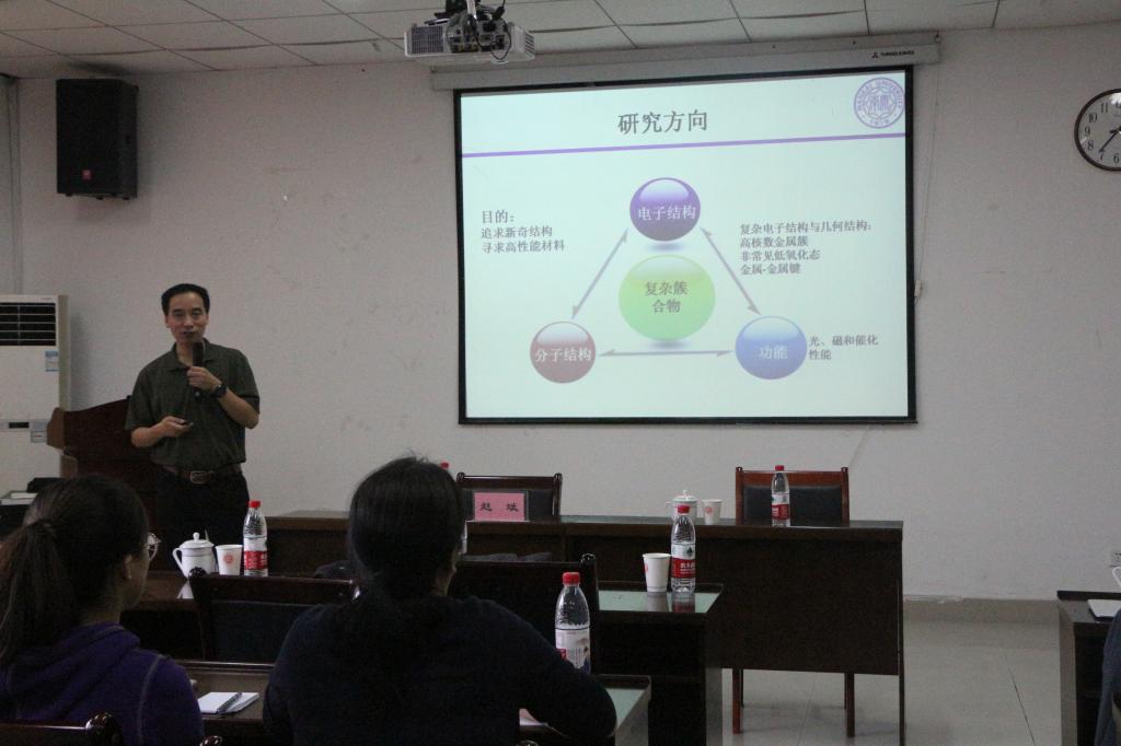 赵斌教授做了题为《复杂簇合物的结构和功能》的报告,以ZnI8立方簇合物和CoI8立方簇合物的结构和功能为例,介绍了高核金属簇合物结构与功能以及最新研究进展。