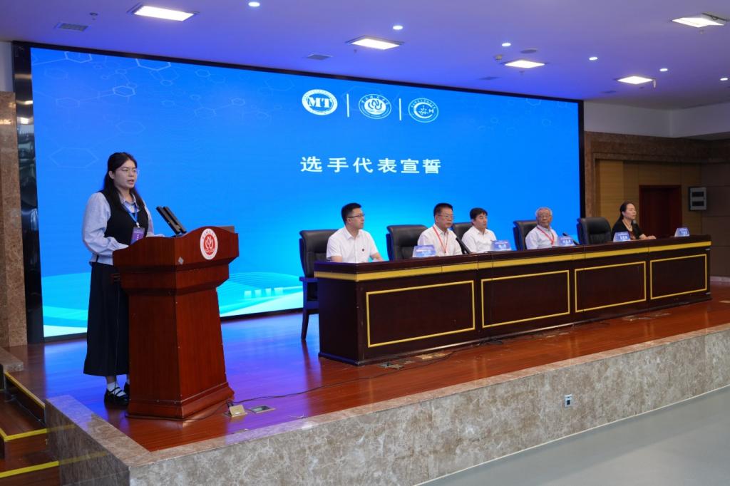 选手代表——来自太原师范学院的2024级化学研究生,代表全体参赛选手郑重宣誓,表达了以饱满的热情和良好的风貌投入比赛的决心。随后,评委代表上台宣誓,承诺将严格遵守比赛规则,坚持公正、公平、公开的原则,圆满完成评审工作。