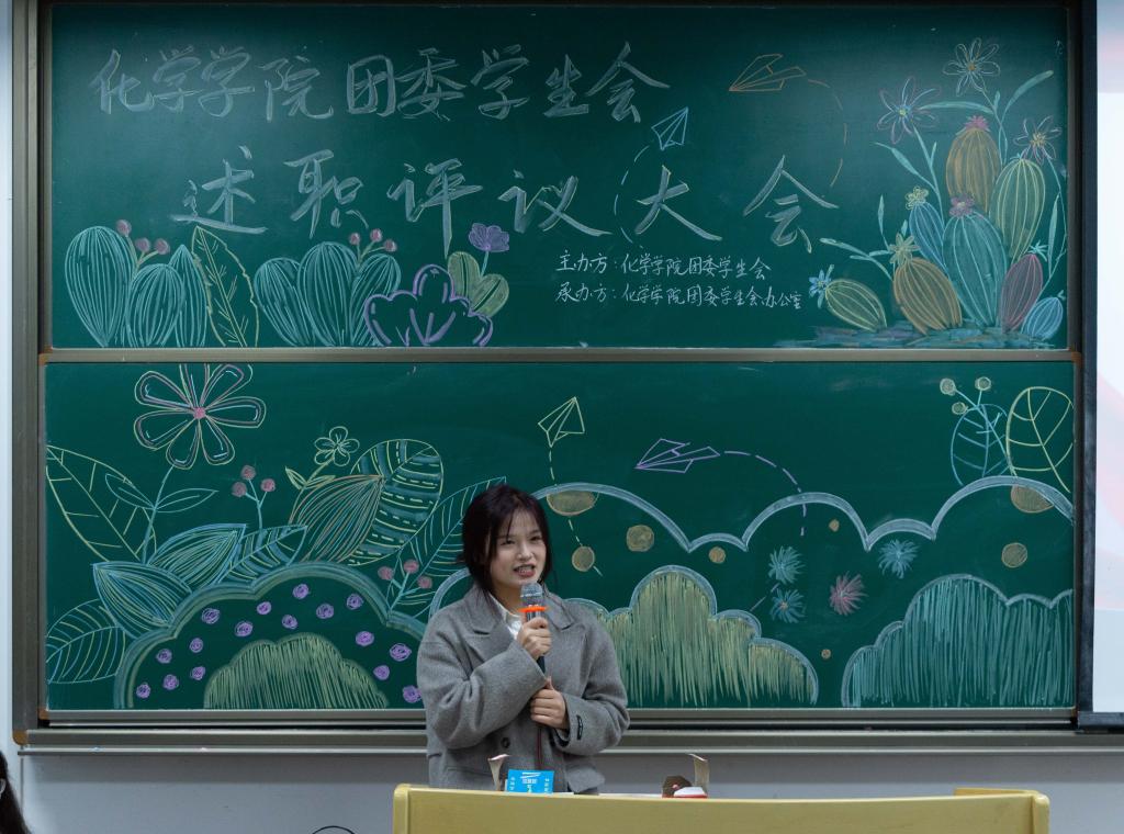 会上,团学会主席团及十三个部门的负责人以PPT的形式依次进行述职报告,各负责人就学习情况、活动建设、工作成效等方面的工作进行概述,大家总结成绩、分析不足,规划部门今后的工作,并提出了目标明确、切实可行的工作计划。