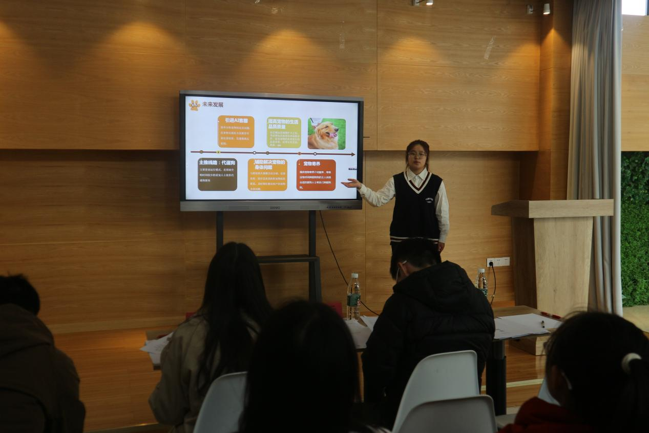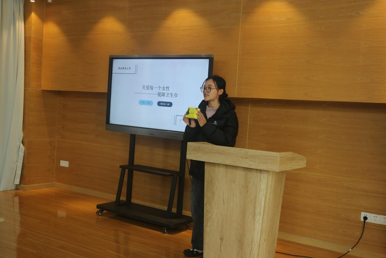 本次比赛共10只团队参与,比赛分为限时项目讲述与现场答辩两个环节。本次参赛的项目各有特色,团队成员们积极挖掘发现人们的需求和生活中的问题,利用生活用品进行改进,使其更好地服务人群。例如,“宠爱计划”旨在将有宠物但忙于工作没有时间的人与有时间并且热爱小动物的人群建立联系,实现互利共赢;而“视障卫生巾”则针对视障女性群体,将盲文与卫生巾结合,使视障女性使用更加方便,该团队受到王震强老师的建议,可以申请专利。
