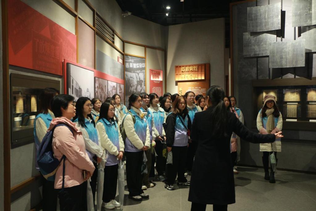 沿着壮志路和凌云路,同学们在讲解员的带领下进入歌乐山革命纪念馆,重温革命先烈们的英勇事迹,走近党的光辉历史,切实感受红岩精神。受尽酷刑顽强不屈的巾帼英雄江竹筠、中国年龄最小的革命烈士“小萝卜头”宋振中、“在烈火和热血中得到永生”的叶挺将军和崇尚科学、捍卫民主的数理学家周均时先生……馆内的一幅幅史图生动讲述白公馆、渣滓洞革命先烈的斗争事迹,每一件展陈的物件内容引人久久驻足,心生震撼。