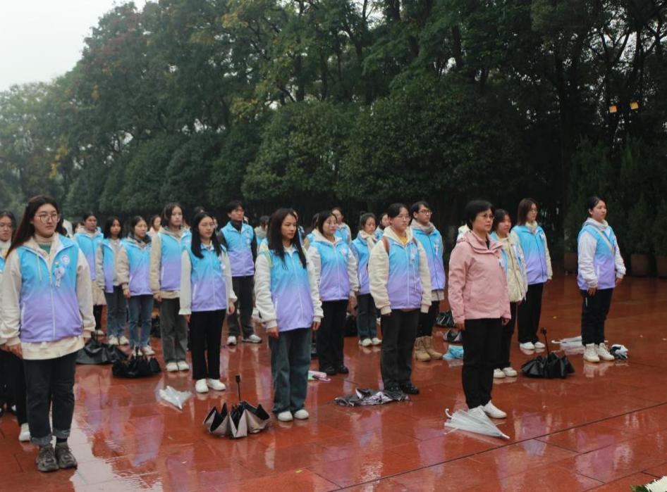 党委副书记蒋红的带领下,各学生党支部党员、入党积极分子代表、申请入党人代表,共计48人共赴歌乐山烈士陵园,开展“关于重庆历史、红岩精神和重庆现代化建设成就”的主题党日活动,缅怀革命先烈,传承红色基因,汲取信仰力量。
