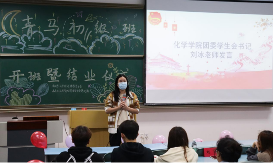 最后,学院团委书记刘冰老师深情寄语:她不仅肯定扬了十四期学员们的优秀表现,还鼓励新一届青马成员勇做新时代的马克思主义者,不仅要提升综合素质,还应朝着未来发展看齐,向着党旗所指将坚定理想信念与加强理论学习结合起来。
