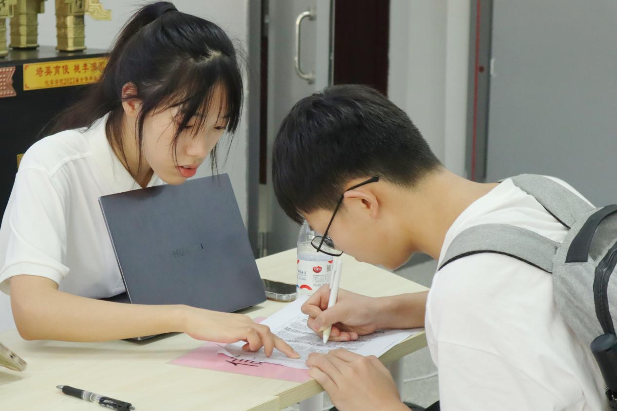 “同学你好,我来帮你拿行李!”“车子在这边,我带你过去。”身穿蓝白院服的迎新志愿者们以微笑接待每一位新同学,面对新生与家长,他们热情有礼地指引方向、帮忙分担行李。接待途中,志愿者们与新同学热心交谈,积极介绍校园环境和生活经验,正向引导新生,展现了作为学长学姐的责任与担当。