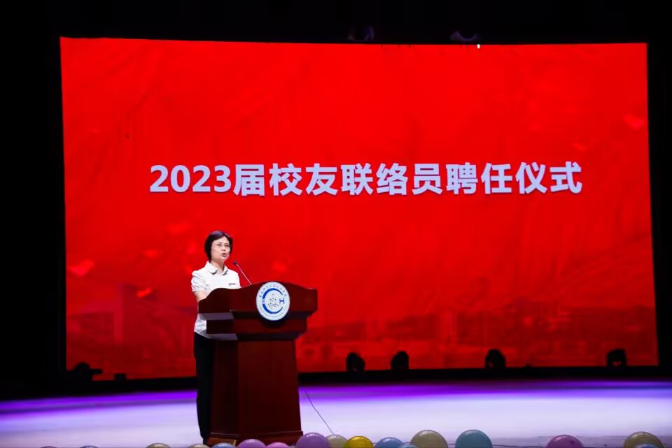 在观看《2023届毕业视频》后,蒋红老师主持2023届毕业生授位仪式。庄严肃穆的国歌响起,在场人员全体起立,奏唱国歌。刘院长为我们宣读了2023届优秀毕业生名单,并为其颁奖。而后,进行2023届校友联络员聘任仪式及毕业赠礼,其中,王子豪任2023届校友联络常务理事。