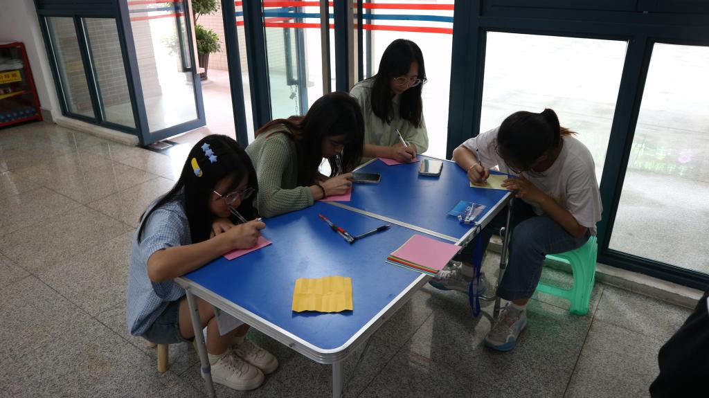本次“心灵树洞”活动采用文字的形式进行,以文字来拉近同学们间的距离。通过写信与回信的交流方式,用朴素而真挚的言语传递着爱与温暖。在工作人员处领取心灵彩纸后,同学们用手中的一支笔,写下自己的故事,尽情地吐露心声。同学们在心灵彩纸上留下了困扰已久的疑惑,写下了埋藏心底的秘密,诉说着对未来欣欣向荣的期许。