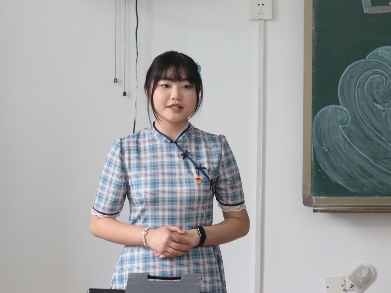 在评委们进行打分评比,评选出了最后的结果后,由陈小雨老师做出点评。陈小雨老师认为同学们的PPT制作已经大有成效,美中不足的是在比赛的细节处理。同时,号召同学们要更加努力学习并发扬二十大精神,做到“六个坚持”,努力提升政治素养与核心能力。