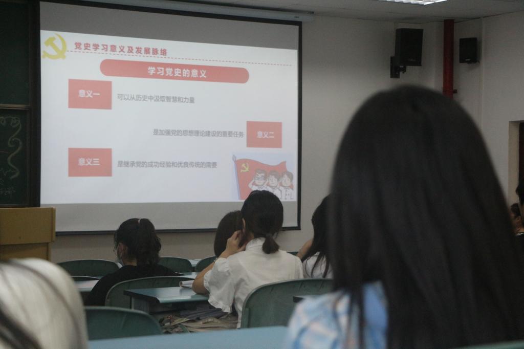 紧接着,刘冰老师详细地给同学们讲解了学习党史的意义所在。学习党史不仅可以让同学们从历史中汲取智慧和力量,还可以加强同学们把中国共产党的思想理论建设作为首要任务的意识,这是继承中国共产党的成功经验和优良传统的需要,也是同学们作为中国青年担当使命和责任的基础。