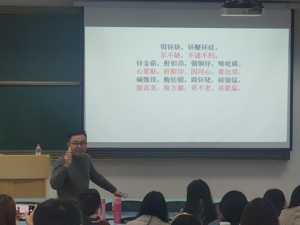 紧接着,钱胜老师围绕“如何成为优秀的教师”与同学们进行分享。他为同学们讲述了自己与大学高数老师的真实故事,由此告诉同学们——“尊重与爱心是师德的灵魂”。希望同学们热爱自己的专业及职业,与此同时,更要树立职业情感,培养职业认同感、职业自豪感、职业责任感和职业成就感与幸福感。针对职业自豪感,钱胜老师向同学们分享了当代很多名人与化学的渊源,让同学们在表示惊叹的同时,也增强了一份作为化学人的自豪感。针对职业责任感的培养,钱胜老师还结合现实生活中与化学相关的时事重大事件向同学们进行分析。钱胜老师幽默风趣的讲述方式,引得同学们的阵阵掌声。在讲述过程中,同学们也积极与钱老师进行互动,现场气氛十分活跃。
