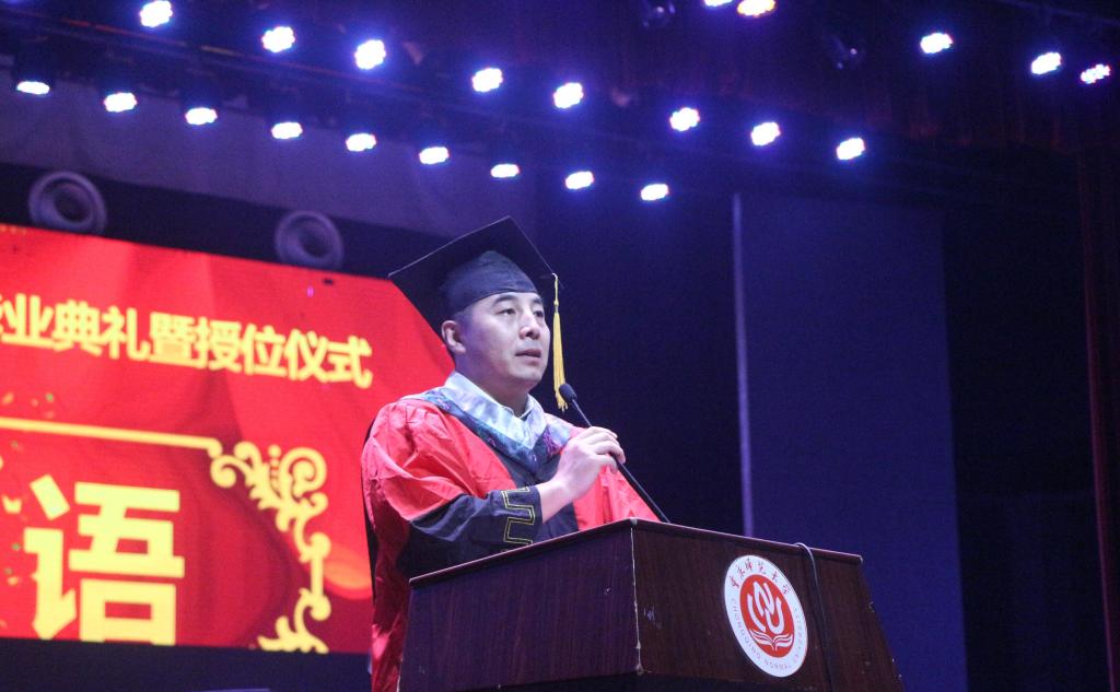 紧接着,教师代表周琦老师上台发言,周老师在现场回忆起和同学们相处的点点滴滴,再结合自身经验,以过来人的身份给予同学们谆谆教诲,“不祝大家鹏程万里,只祝大家一路顺风”。付文升院长在给毕业生的致辞中说了三句箴言:“做好人,做好事,走好路”,人生中不能拒绝的路是成长的路,不能选择的路是放弃的路,大家即使心酸不甘,也要踌躇满志,坚持着继续走下去。毕业典礼是大学的最后一堂课,付院长告诫大家“万丈高楼平地起”,祝福大家走向美好的明天。最后,刘玺老师宣读《学位委员会授位决定》,老师们为毕业同学颁发学位证书,给予同学们最真挚的祝愿。在悠扬的校歌声中,2021届毕业典礼暨授位仪式圆满结束。