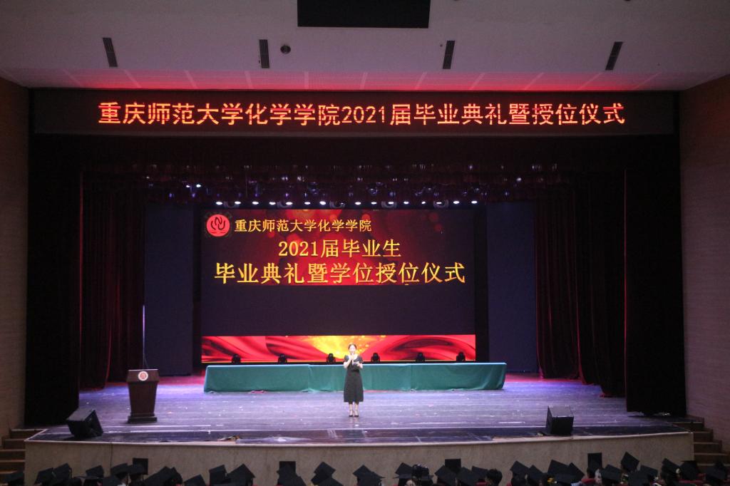 典礼伊始,通过观看《2021届毕业视频》,老师和同学们共同回顾了过去四年里一起度过的点点滴滴,在主持人的介绍下,材料一班的王艺衡同学为大家带来笛子演奏《乱红》,笛声悠扬,在场观众凝神倾听。化师二班的同学们为大家带来声情并茂的歌唱节目《青春串烧》,化师一班的同学为大家带来充满重庆地域特色的相声表演《普通话》,高分子专业同学带来歌曲《后来》,气氛十分热烈,同学们纷纷伴随着歌曲的旋律挥动双手。接着,化师三班同学带来充满活力的舞蹈串烧,化师四班带来感人的歌曲《明天,你好》,现场气氛逐渐被推向高潮。