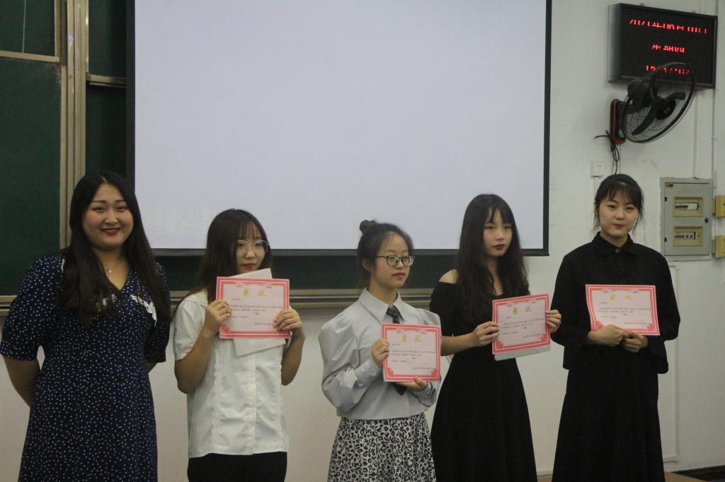 他们精彩详细的讲解向我们展示了自己的师范生技能以及独有的讲课风格。同时每位选手讲题结束后,评委也会根据选手表现,依照比赛规则进行打分,并在每组选手讲题结束后公布上一组选手得分情况,比赛现场气氛紧张而又刺激。经过了接近两小时的激烈角逐后,活动接近尾声,所有参赛选手的讲题展示结束。三位评委对参赛选手们的表现表示肯定,也细心地针对每位选手的问题提出具体的改正意见。最后,为获奖选手颁发奖状并合影留念,本次讲题比赛圆满结束!