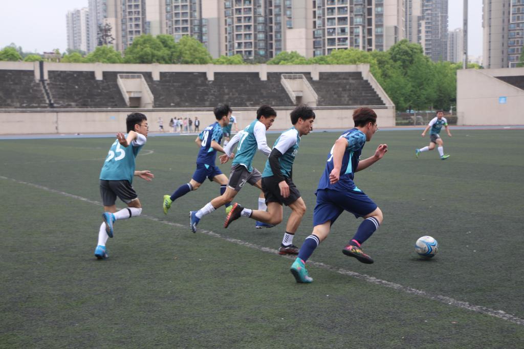 一名队员不慎受伤,不得已遗憾下场,即使如此,此次比赛仍然激烈进行,比赛进行半小时后,进行中场休息,双方球员都大汗淋漓,但是没有一个人喊累,双方队长在中场休息的时间进行着战术安排以及人员调整。休息过后,双方又进行了后半场的激烈酣战,最后,物理与电子工程学院更胜一筹,赢得了比赛。