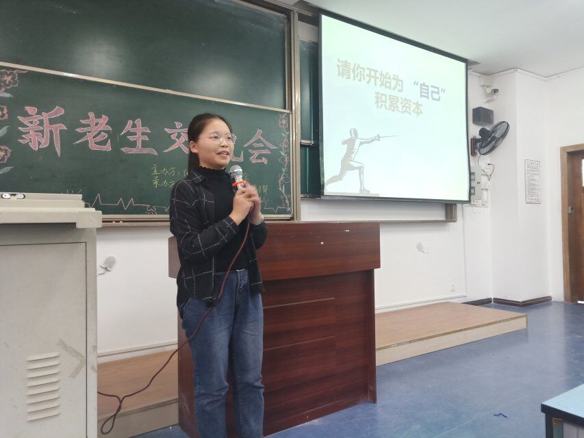 两点半,活动开始。第一环节由陈朗坤和胡美辰分别讲述他们的一些心得体验,包括需要如何应对大学生活、如何以坚持不懈的姿态追求自己的目标,同时也包含了怎样与导师交流,更好地提升专业能力等方面。两人尤其鼓励同学们认真学习争获奖学金,争获“三好”。同学们积极认真,仔细地了解着关于四六级考试、计算机考试、大学生必备技能,还有关于老师的基本了解。