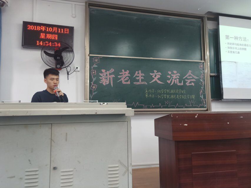 为丰富校园文化,指引大一新生找准学习的方向,更快更好地融入大家庭,2018年10月11日,化院团委学生会利用下午两点半到三点半的时间在鸿德楼15301教室,面向材化一班、二班组织了一场新老生交流会。
