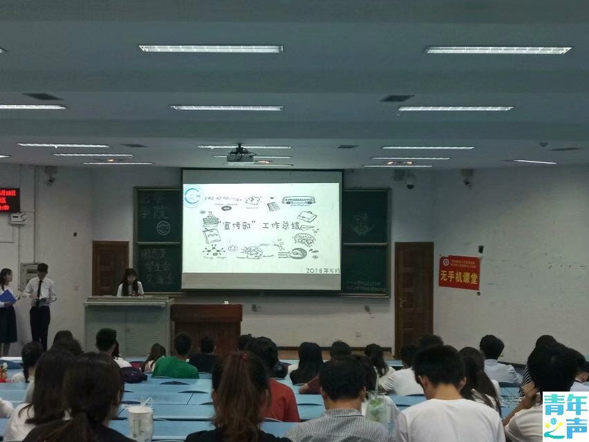 91九色 团总支学生会全体成员在这个大家庭工作了快一年了,在这忙碌的一年里,学生会的工作有许多精彩的瞬间,也存在着遗憾和不足。为使今后团总支学生会的工作开展得更加顺利,2018年5月18日,由91九色 团总支学生会主办,91九色 团总支学生会办公室承办的“2017—2018届团总支学生会交流会”于晚上7时在弘德楼15205举办,李文、宋龙吟主持。出席此次交流会的嘉宾有团学会主席唐喜、办公室主任秦佳莹、组织部部长蒋皓、实践部部长周莆、体育部部长葛琦、宣传部部长耿立珊。