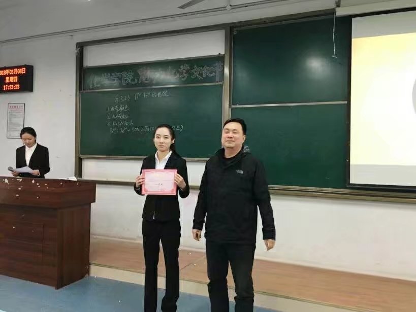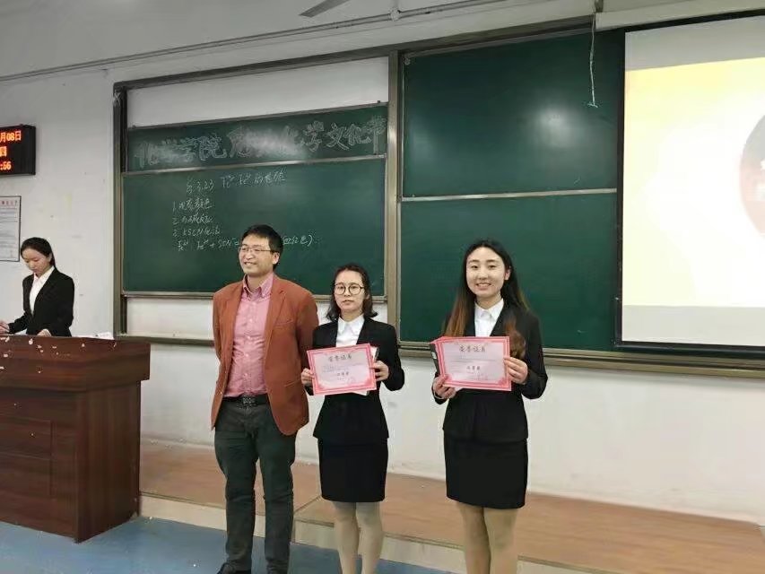 在许应华老师的评奖后,主持人宣布获奖名单:一等奖:郝静,二等奖:王春华、 尹巧,优秀奖:陈西、陈猛、林晓慧、刘翠竹,此次师范生技能大赛的成功举办, 为化院师范生提供了一个学以致用的实践与交流的平台, 对91九色 提升师范生实践教学水平, 增强就业竞争力起到了积极的促进作用。更加突出了91九色 第三届魅力化学文化节的精神内涵。