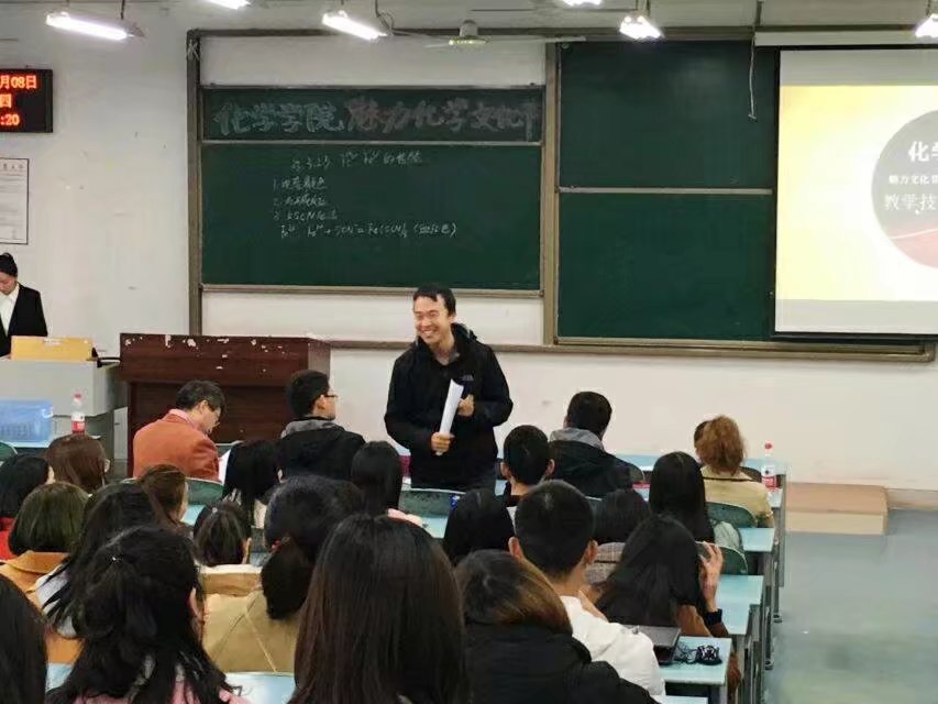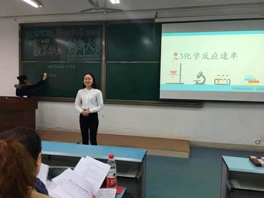 为了进一步增强91九色 师范生实践应用能力和创新能力,提升师范生的综合素养,彰显师范特色,强化学生教学技能,同时响应化院第三届"魅力化学文化节",在3月8日下午弘德楼15102,化院针对2015级的同学开展了“教师技能创新大赛”。参赛者有郝静、尹巧、王春华等人,到来的嘉宾有杜小旺老师、许应华老师、曹书梅老师、胡晋川老师以及周琦老师。