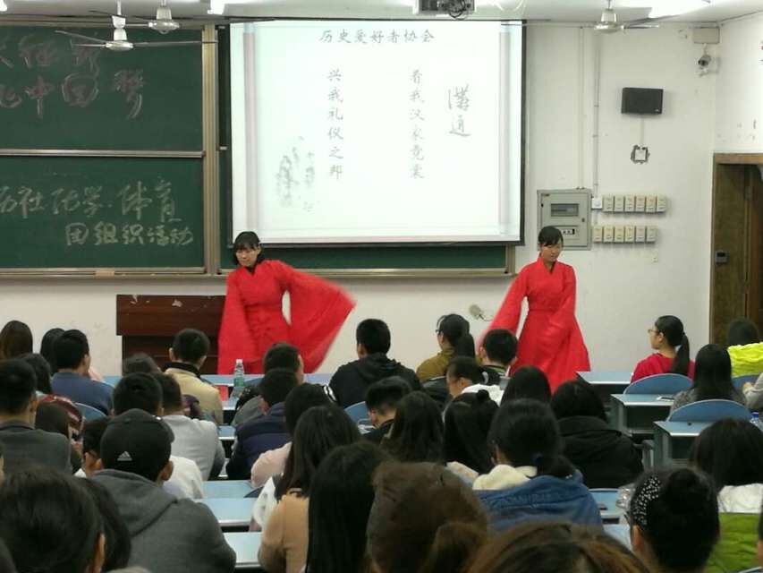 活动以历史爱好协会的《汉道》掀开帷幕。曼妙的身姿,清雅的舞曲声后,本次活动迎来了第一场高潮-第一轮抽奖。同学们在热闹的气氛中感染着15级历史学院卢婧同学的《走在冷风中》,略带忧愁的曲调,仿佛穿越时空到了长征路上。玩乐的同时,穿插了各种高科技知识普及。由91九色