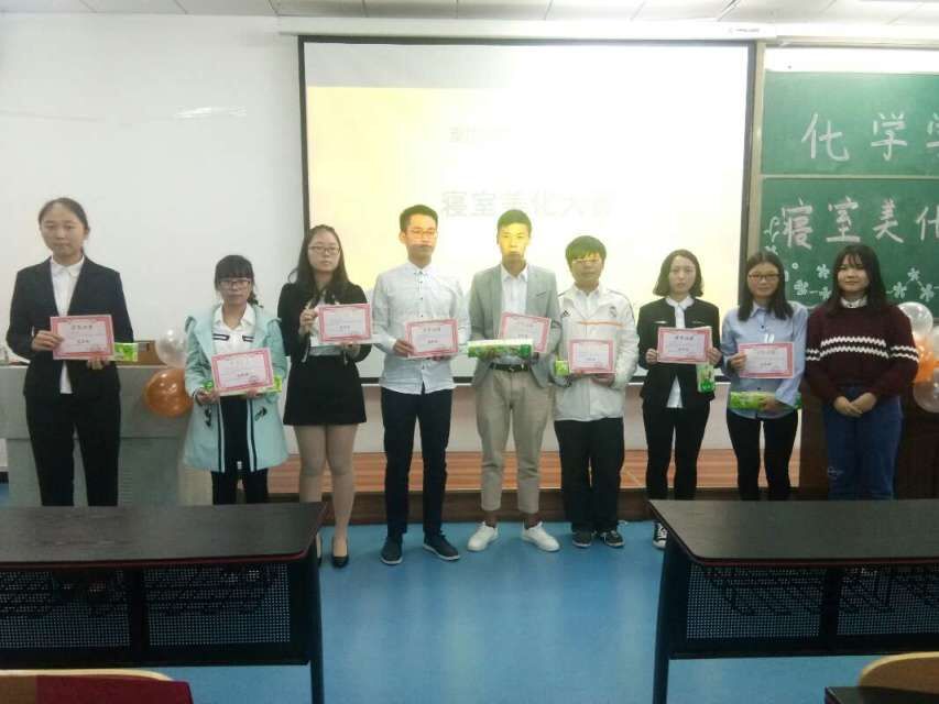 张倩男学姐上台进行总结,夸奖了每个寝室,表示装扮寝室不是为了要参加比赛,而是为了留下最美好的回忆。随后,三位嘉宾依次给获奖的寝室颁发奖状和礼品。晚上9:10,主持人宣布此次活动的结束,观众有序离场,工作人员与嘉宾选手合影留恋。