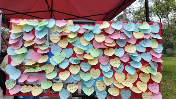 梦想公益协会分享了他们的志愿服务经历和感人故事,参加的同学们绘制着她们心中最富有感染力的笑脸,贴上具有力量的纸条,形成了爱心与欢乐的海洋。