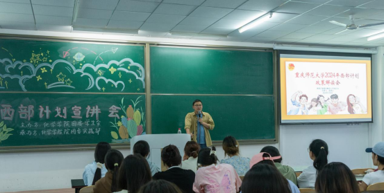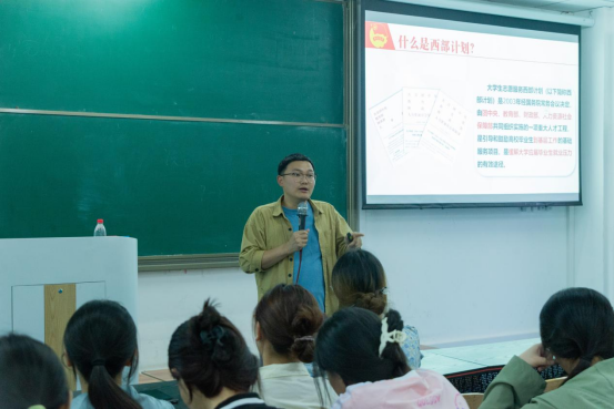 团委实践部邀请到重庆师范大学团委综合科科长孙玖江老师于2024年5月5日在励志楼T2409成功举办关于“西部计划”宣讲活动。全院200余名同学参与了此次活动。