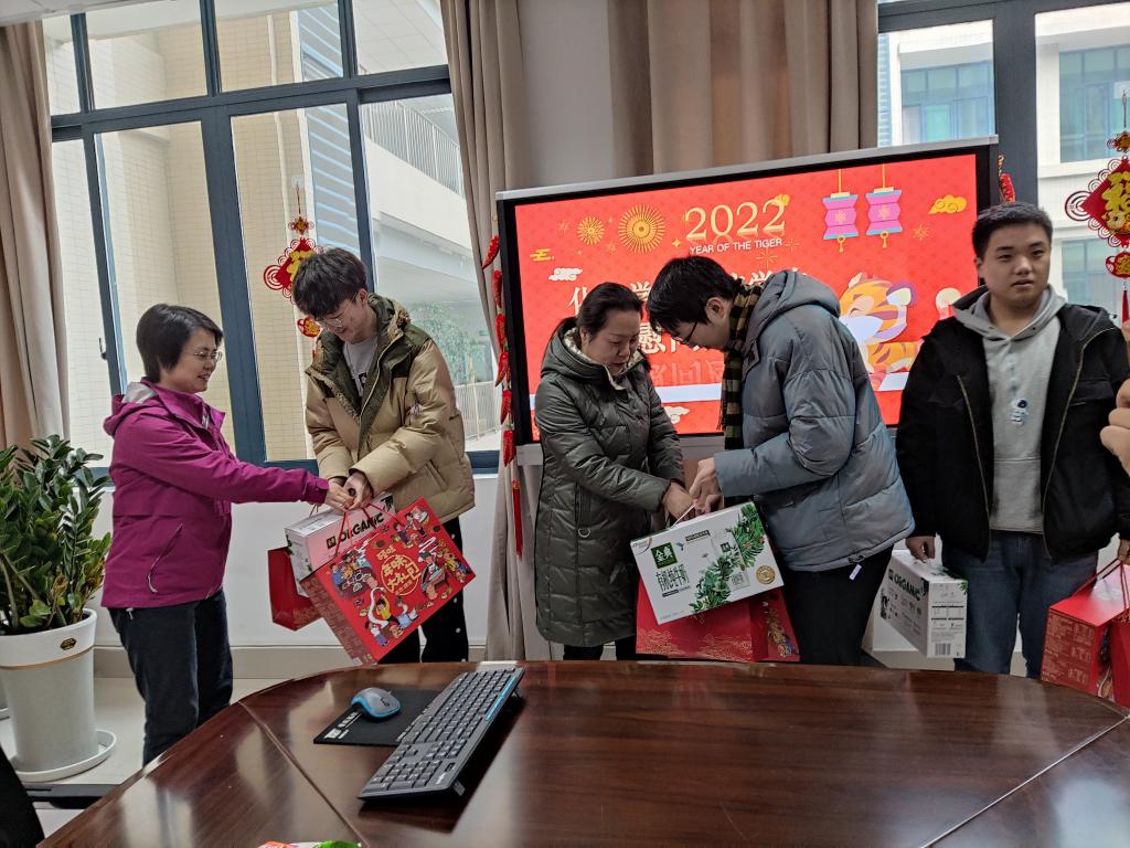座谈最后,卢洪英书记,刘玺副院长和蒋红副书记为留校学生送上了春节慰问礼包,并送上新春祝福,表达了同学们殷切关怀和衷心祝福,祝愿大家在学校度过一个平安、祥和、充实、美好的春节!