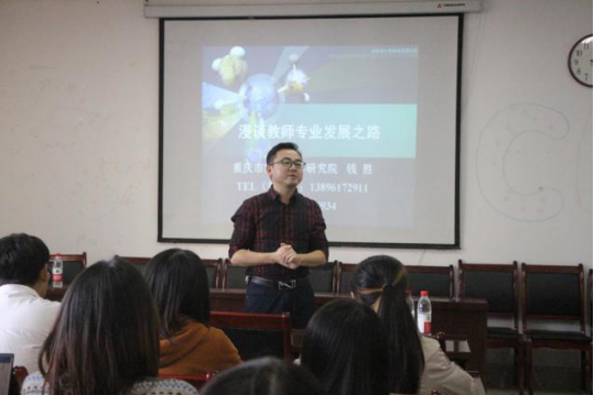 特邀请重庆教育科学院教研员、全国优秀化学教师钱胜老师于集贤楼214开展关于化学教师发展的精彩讲座,钱胜老师用自己的经历和幽默诙谐的语言给91九色
