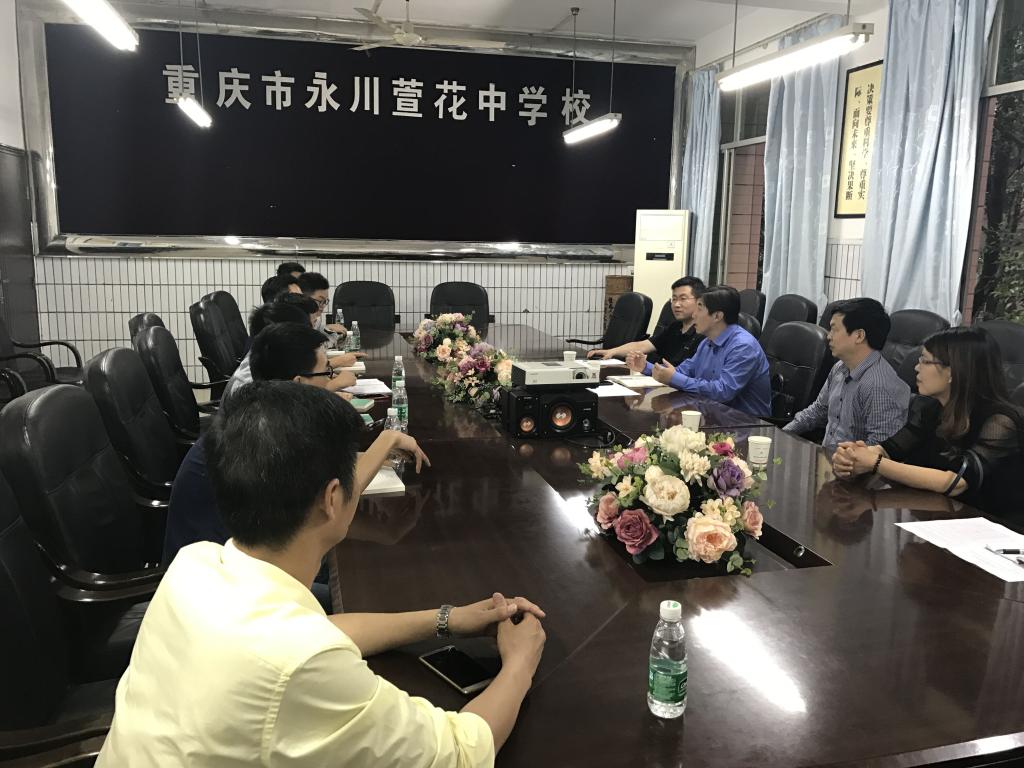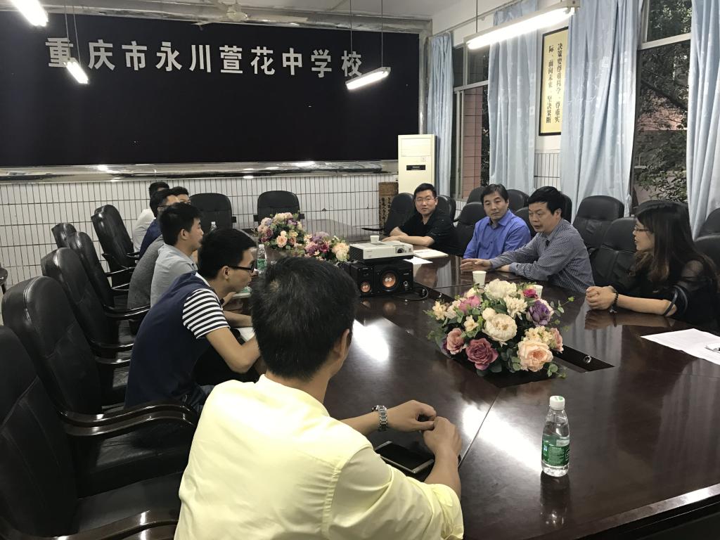 2017年5月22日,学院院长付文升、副院长刘玺一行到重庆市永川区萱花中学进行实习调研,与萱花中学实习指导教师、实习学生等进行座谈。萱花中学实习指导组长、教务处副主任康纪超老师介绍91九色 2014级化学(师范)专业邓弟宗等六名实习学生的实习情况,他们的实习态度及实习质量获得各位指导老师的高度认可和充分肯定,体现了91九色 学生的综合素质和整体师范生技能,为91九色 与萱花中学的后续实习对接打下了良好的基础。