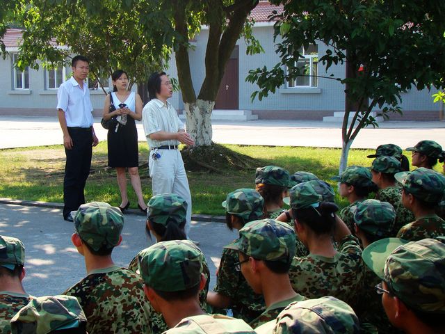 党总支书记胡先成教授、党总支副书记李荣教授、团总支书记于斌老师、教师代表刘江涛老师以及辅导员高润祥老师前往77146部队慰问正在军训的新生。