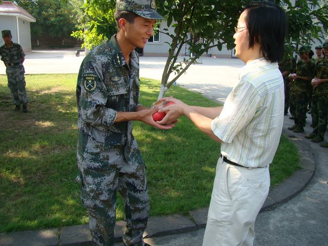 领导、老师还为每位新生送上月饼、苹果等中秋礼物,祝愿大家在军营度过一个快乐的中秋节。