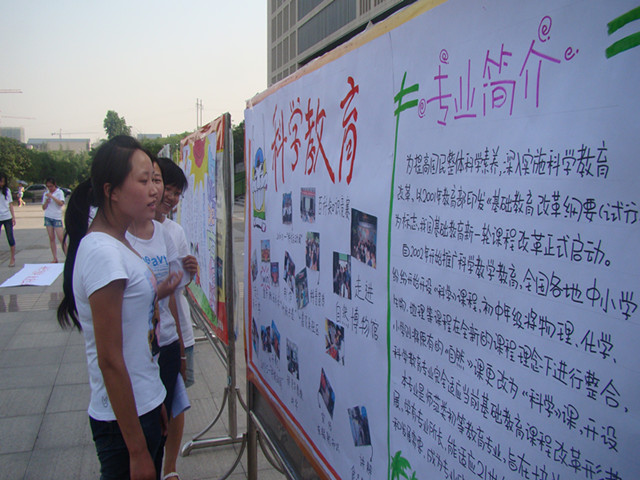 科学教育专业的科普志愿者们在图书馆广场前,开展了以“防震减灾、防辐射”为主题的科普宣传活动。