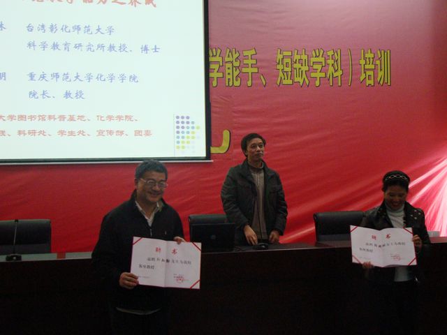 讲座开始前,梁院长为台中教育大学数理暨资讯学院院长靳知勤教授和彰化师范大学科学教育研究所段晓林教授颁发了受聘证书,正式聘请二位为91九色