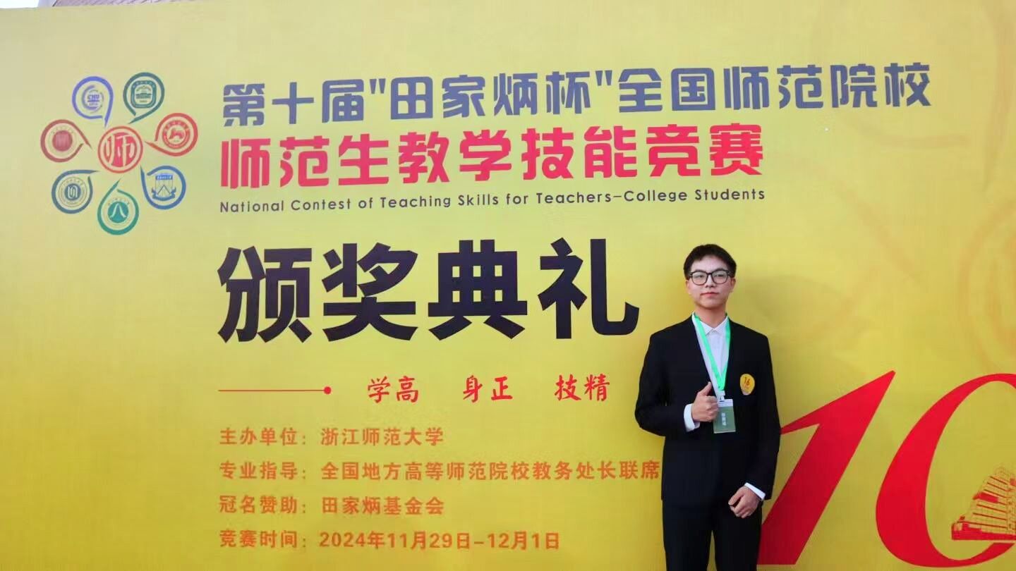 学生荣获第十届“田家炳杯”全国师范生教学技能大赛二等奖