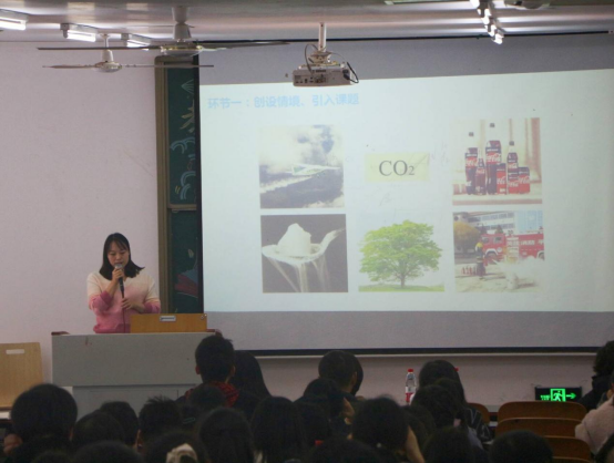 “长江后浪推前浪,世上新人赶旧人”,随着新课标的提出,老师们的教学方法也需改进创新。范丹丹老师紧跟潮流,用一种新的方式设计了自己的说课。老师围绕着二氧化碳的产生、性质、用途等展开教学,最后指出“化学从生活中来,又回到生活中去”,化学教学内容紧扣生活,更利于同学们的理解,为同学们呈现了一堂优质课程,展现了中学课堂教学该有的风采和教学状态。